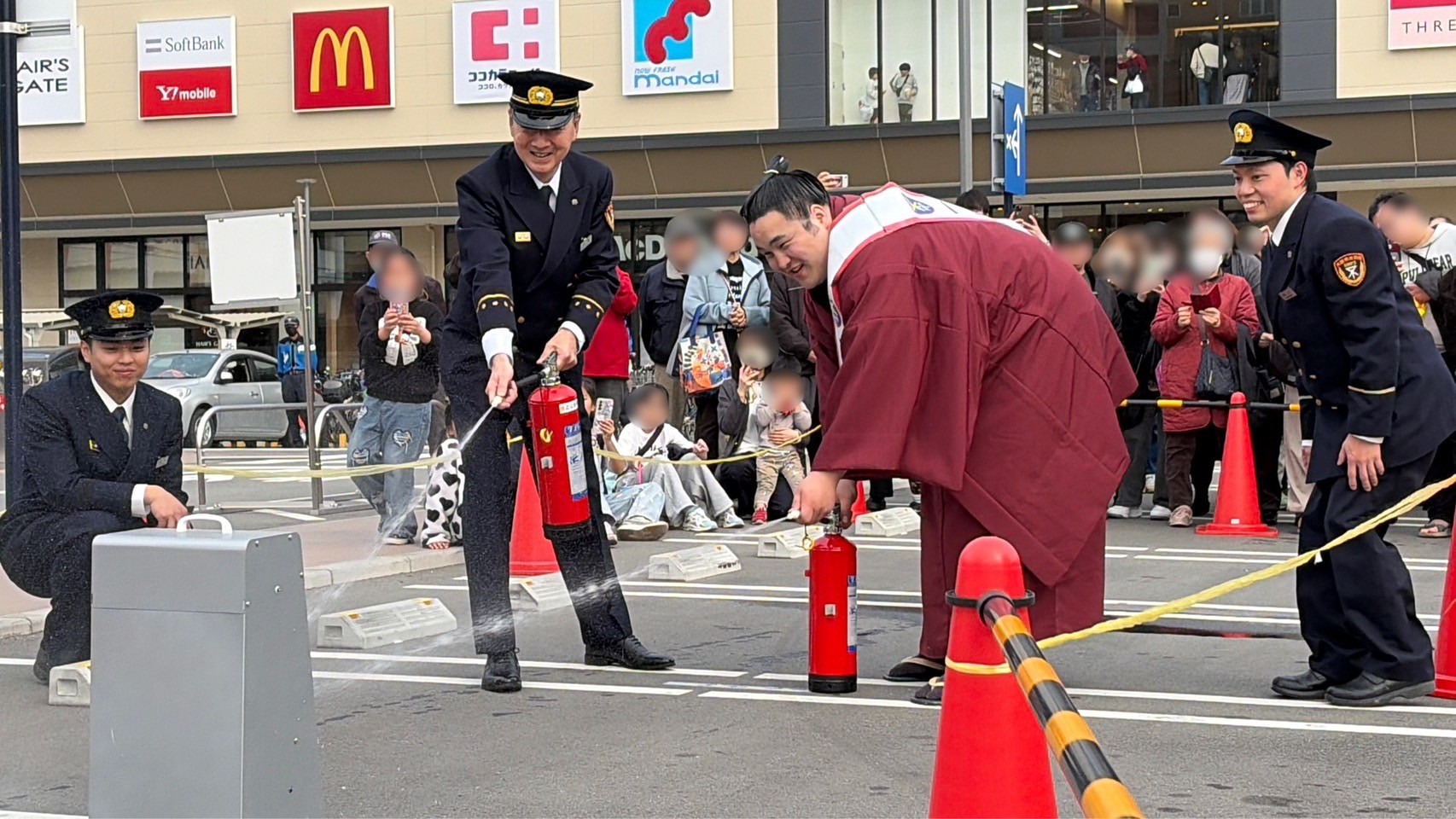 阿武剋関と消防職員の集合写真
