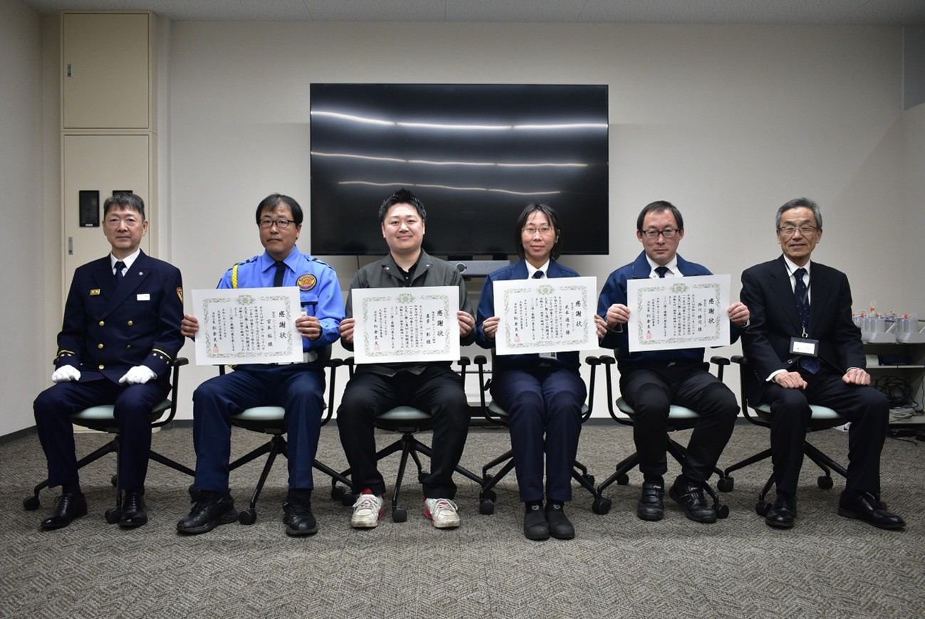 令和8年2月25日(水)、この火災で初期消火に従事した4名に住之江消防署長から感謝状が贈呈されました。