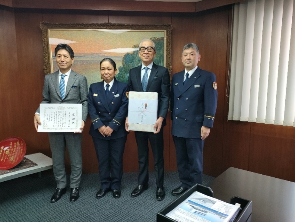 令和7年11月20日(木)に発生した救急事案において、迅速な119番通報、AED使用および心肺蘇生により尊い命を救うことに大きく貢献された事業所に対し、令和8年1月26日(月)消防協力者感謝状の伝達式を行いました。