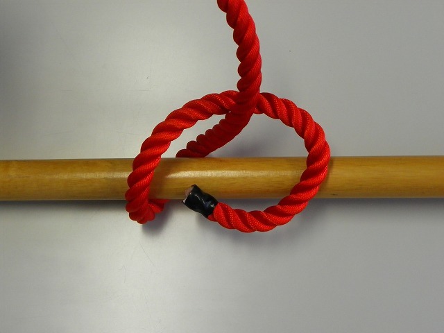 棒などに結ぶ方法で、結ぶのも解くのも簡単で確実です。最後の締めつけが緩いと、ロープの振動などで緩む可能性もあるので、端末はさらに半結びをかけます。
