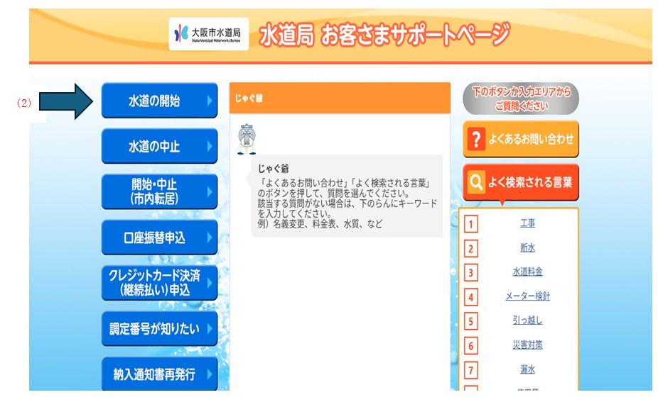 (1)水道局のお客さまサポートページを開きます。お客さまサポートページ