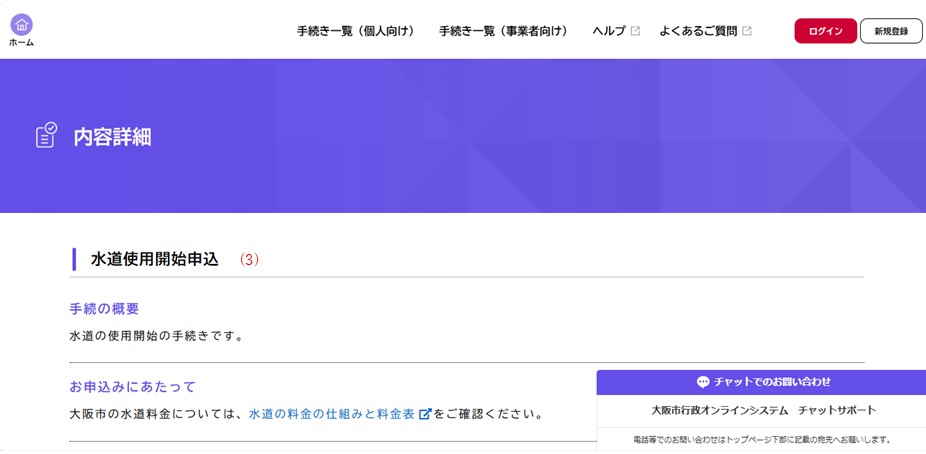 (2)画面左側の一覧から、「水道の開始」を選択します。