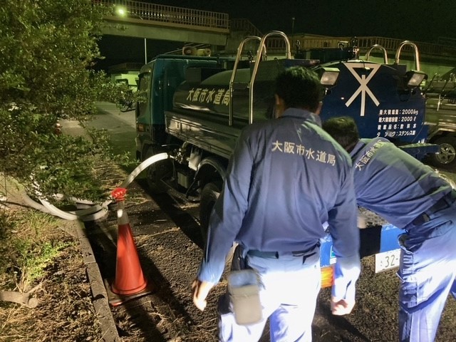 大阪市水道局では、令和3年10月3日(日曜日)に発生した和歌山市北部の「六十谷(むそた)水管橋崩落事故」による断水被害に対して、本市を含む全国の水道事業体から構成されている公益社団法人日本水道協会における相互応援の枠組みにより、10月4日(月曜日)から10月13日(水曜日)の間、応急給水などの支援を行いました。