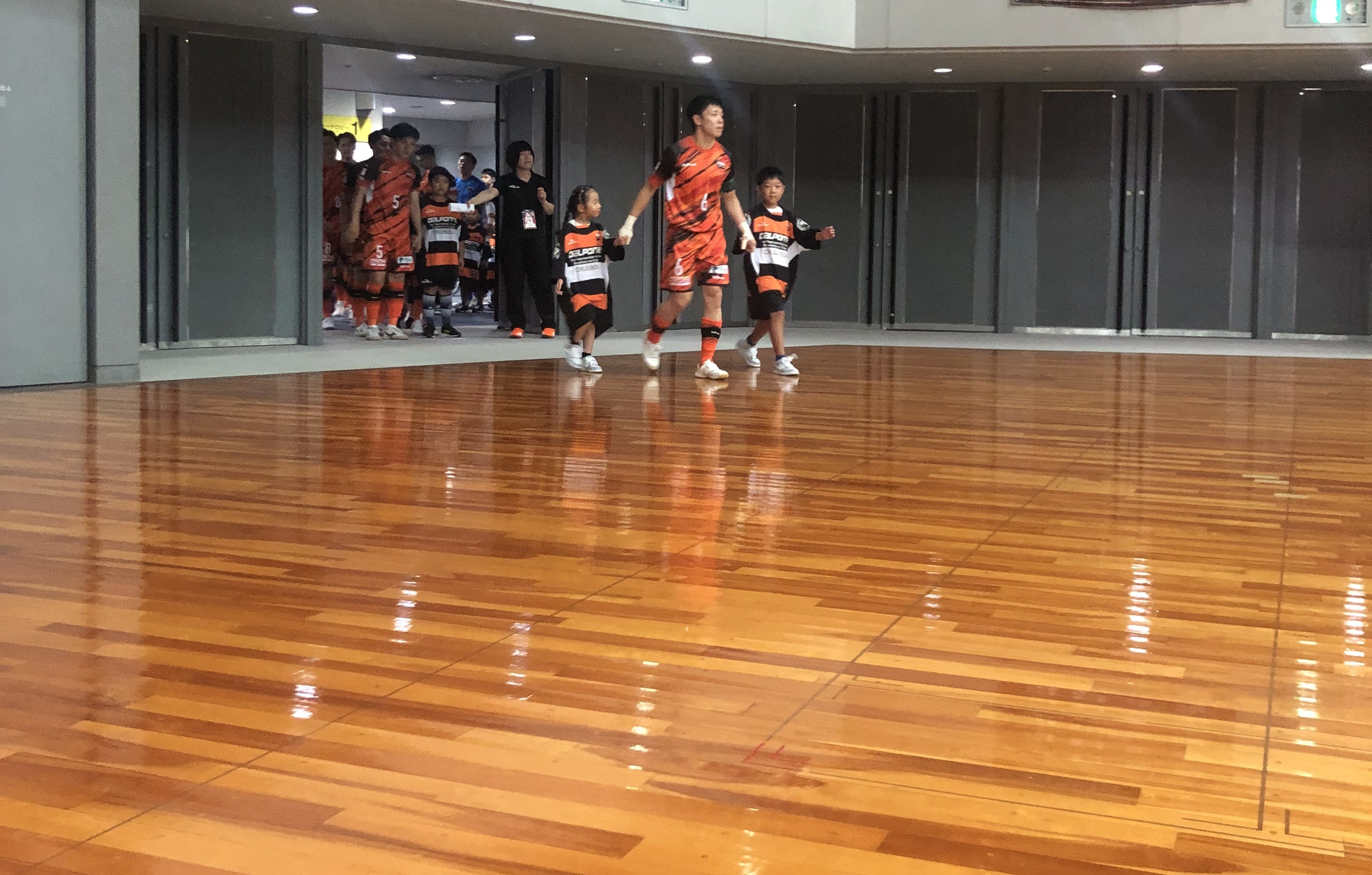 令和5年7月2日(日曜日)、住之江区を活動拠点とするフットサルチーム「シュライカー大阪」の区民優待デーに、住之江区のお子さまがエスコートキッズとして参加しました。