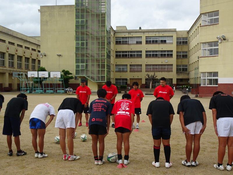 レッドハリケーンズ大阪の選手が中学校でラグビー部の指導を実施しました