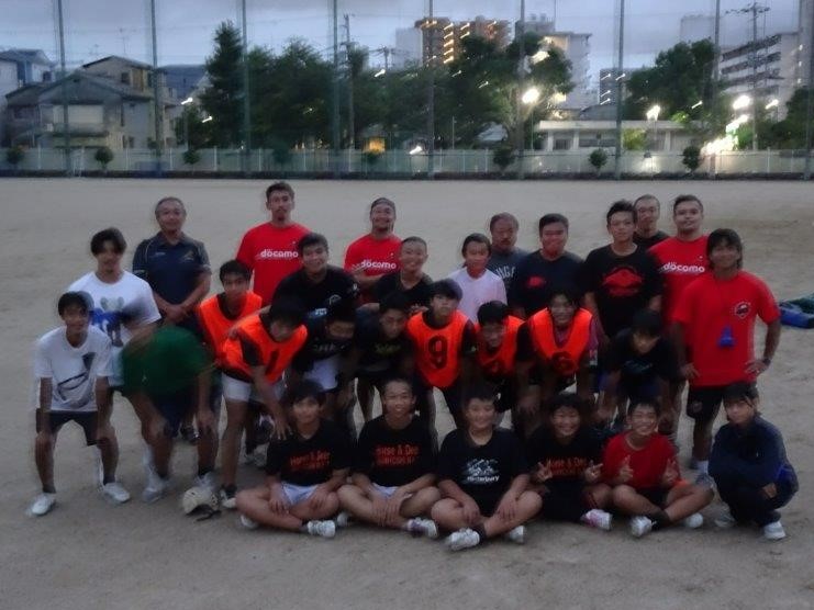 令和5年9月22日(金曜日)、住之江区南港にホームグラウンドをおくラグビーチーム「レッドハリケーンズ大阪」の小泉選手、安田選手、山内選手、石井選手が真住中学校で住之江区・住吉区にある中学校合同チームへラグビー指導を実施しました。