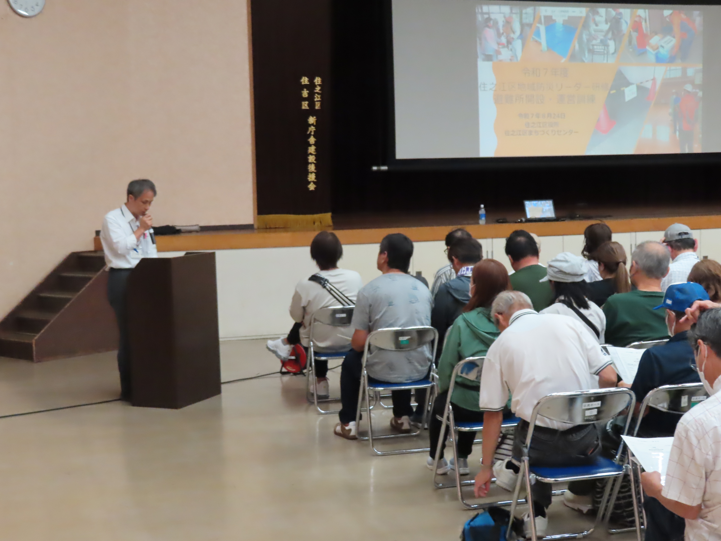 令和7年8月24日(日曜日)すみのえ舞昆ホール(住之江区役所2階)にて、地域防災リーダー研修会(第3回)を開催しました。