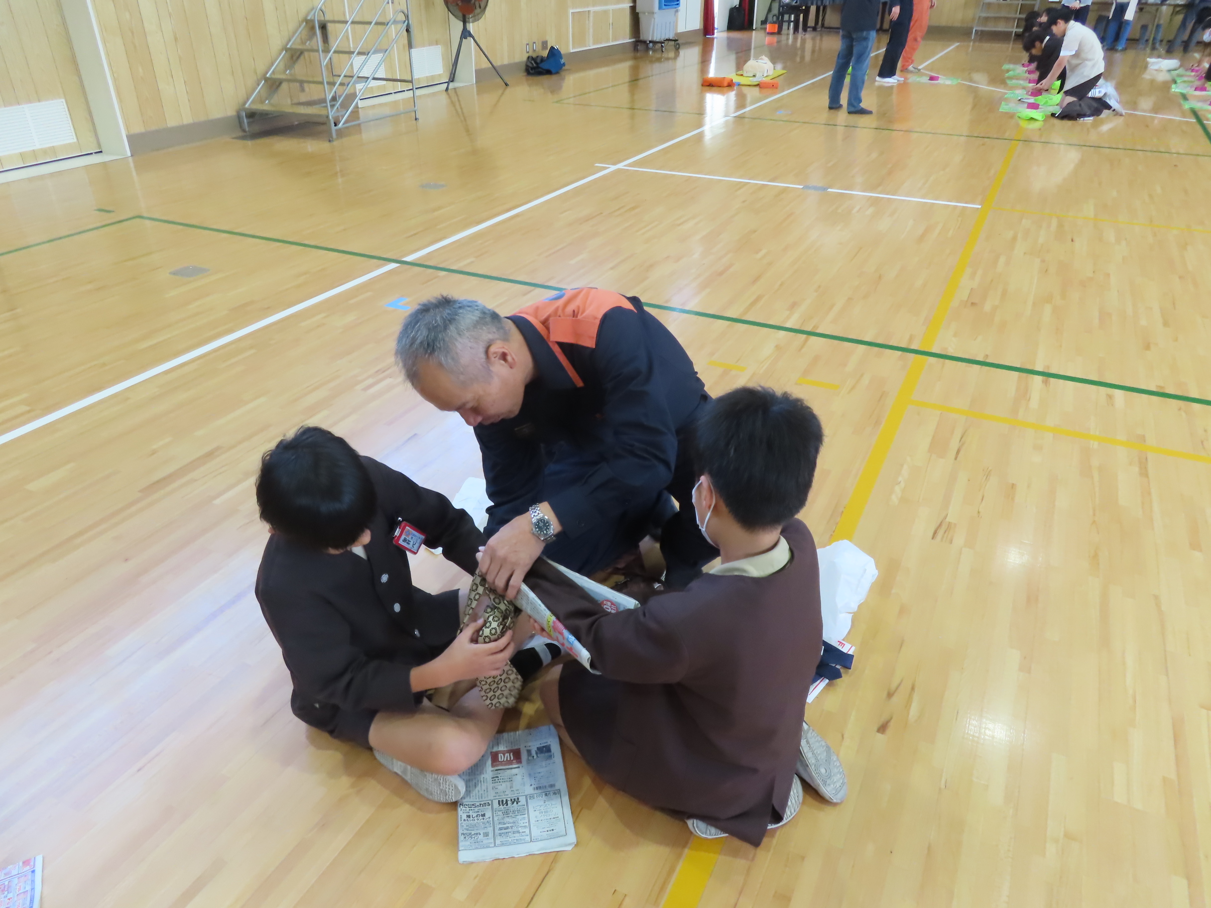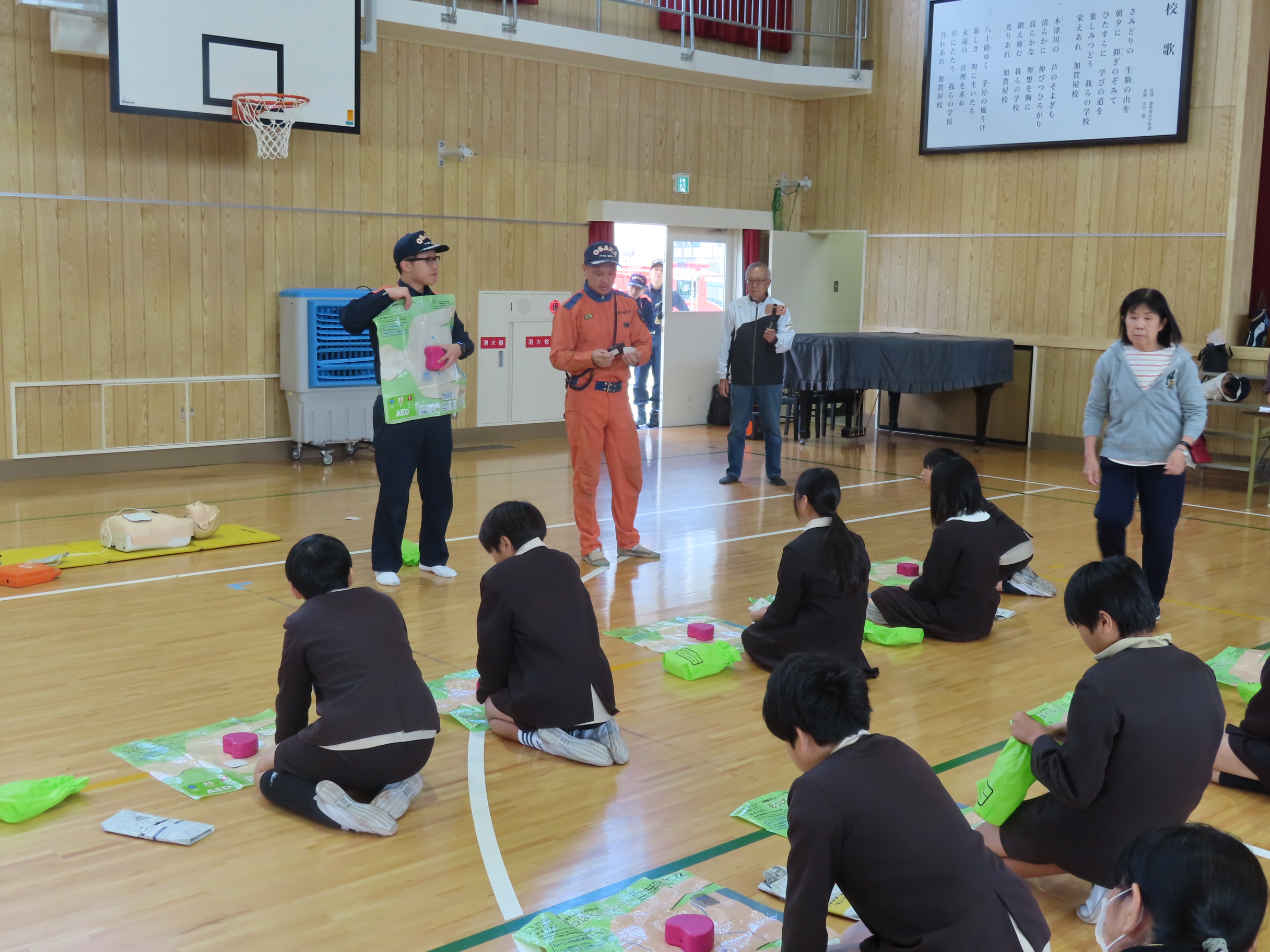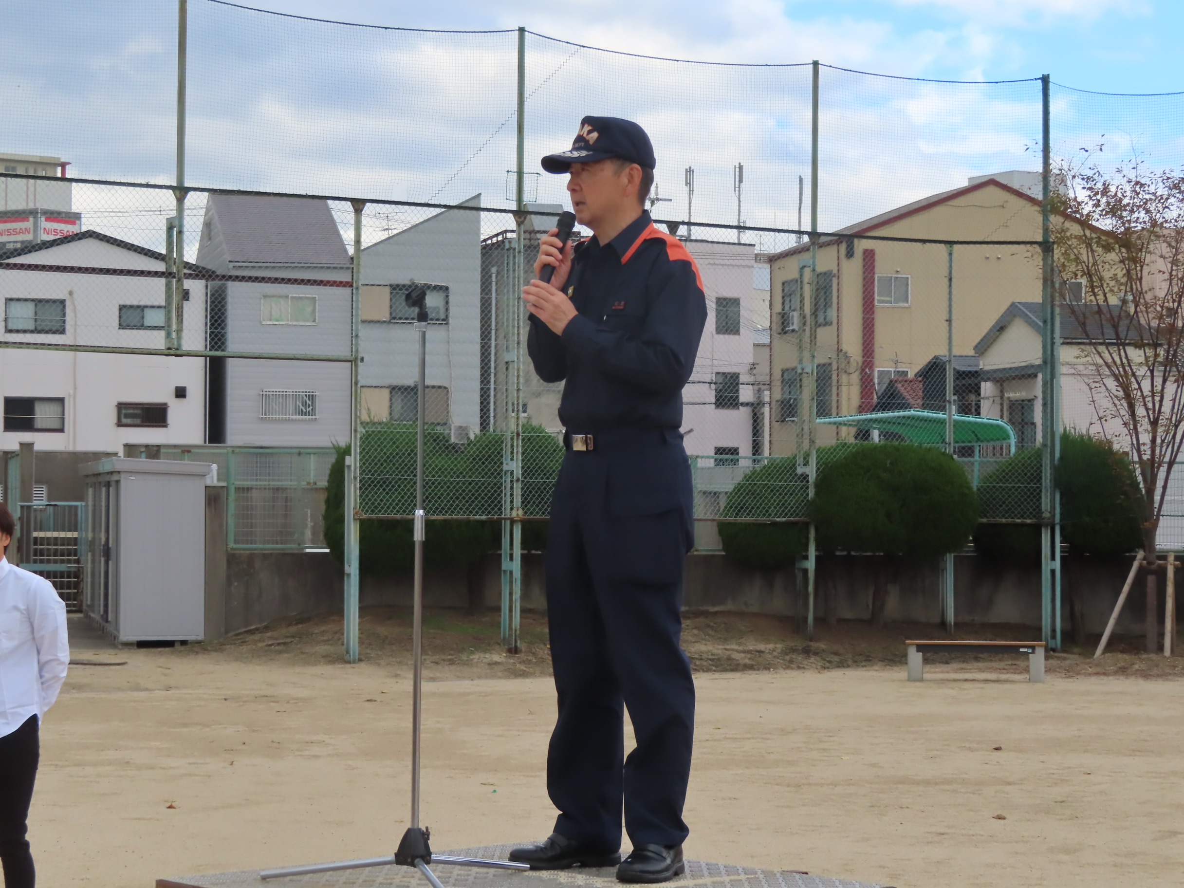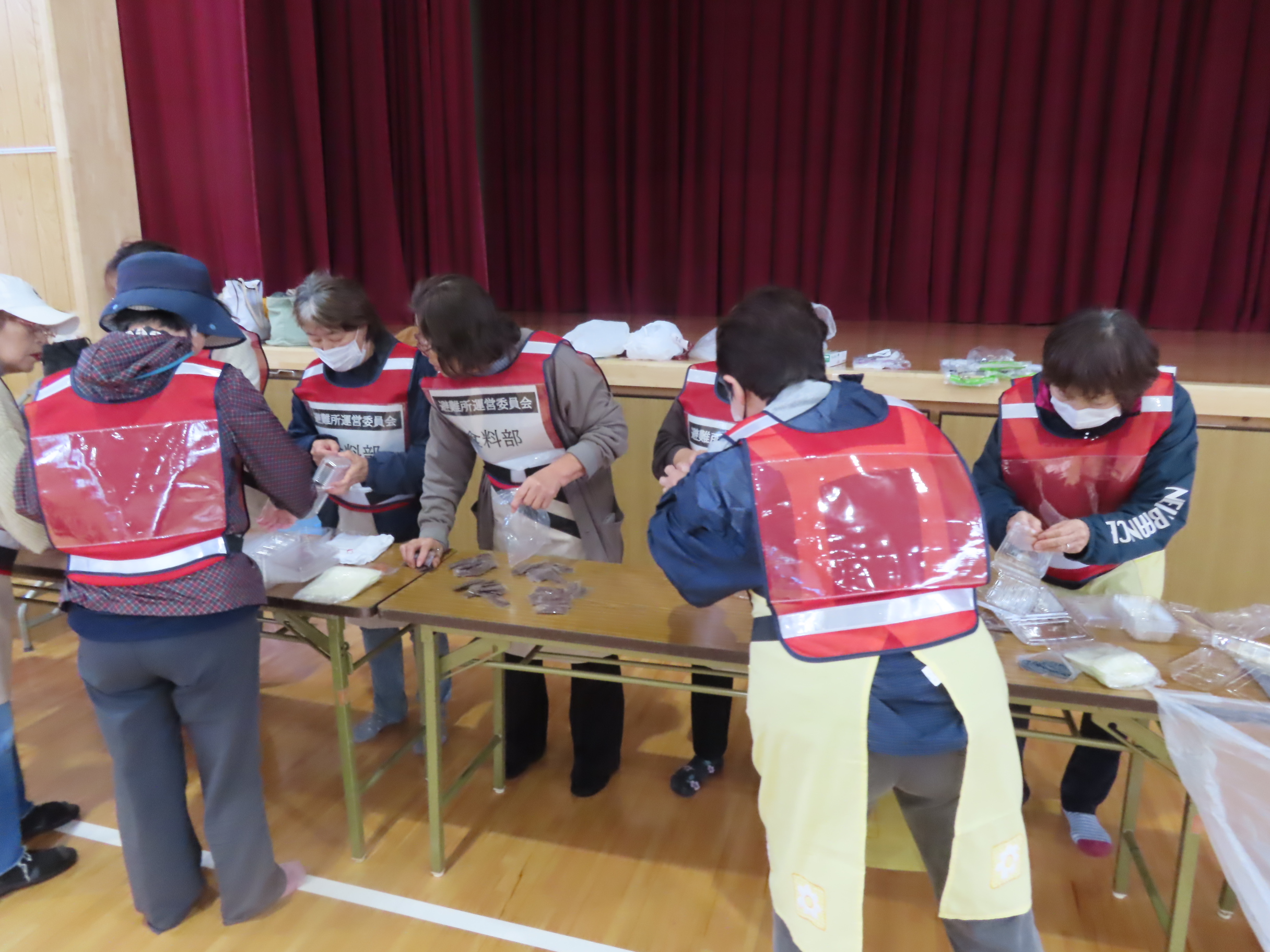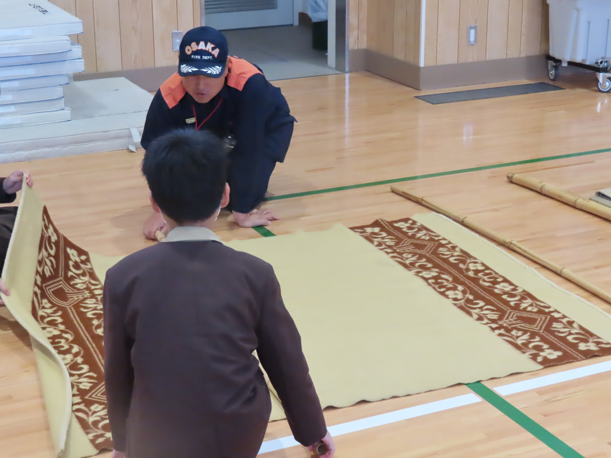 加賀屋地域と加賀屋小学校の防災訓練として、講演、避難所開設・運営訓練及び消防訓練等を実施。