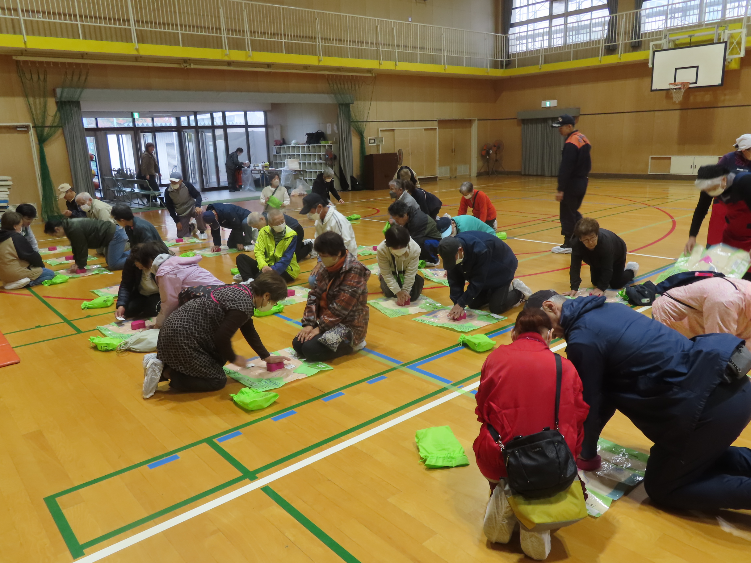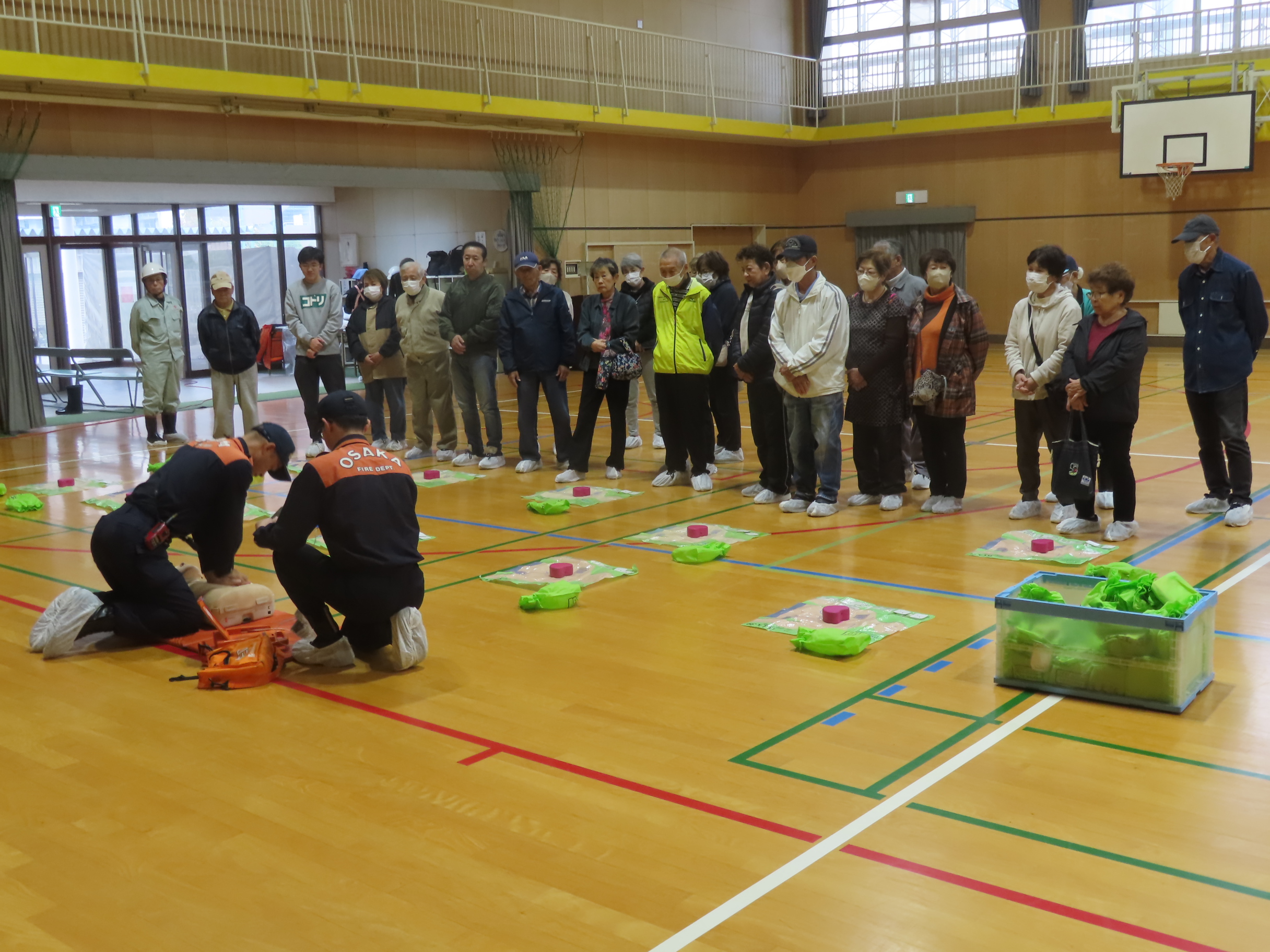 ・「備え」について・炊き出し訓練・煙テント体験・可搬式ポンプの取扱いについて・毛布担架の作成・心肺蘇生法訓練