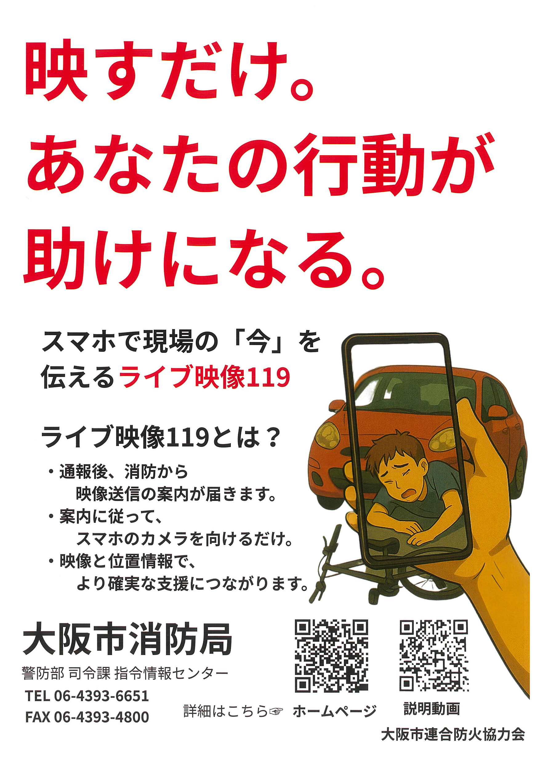 「ライブ映像119」とは、119番通報時にスマートフォンのカメラ機能を使って消防に現場の映像を送るシステムです。