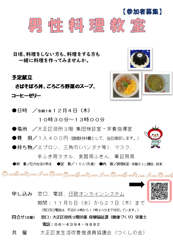 窓口:大正区役所3階30番 保健福祉課(健康づくり)