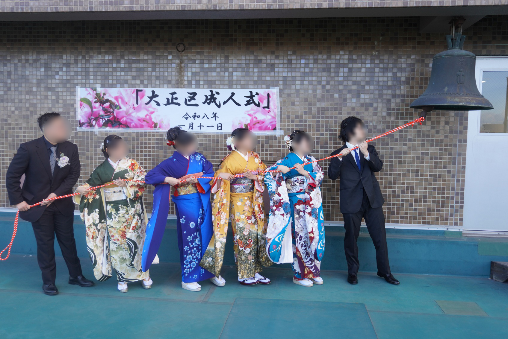 また、式典開始前には、新成人代表(大正区三軒家東地域)の6名の方に、みおつくしの鐘の打鍾を行っていただきました。