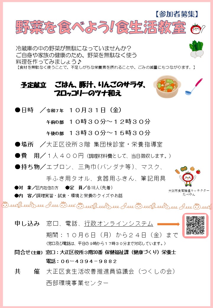 「野菜を食べよう!食生活教室」参加者大募集