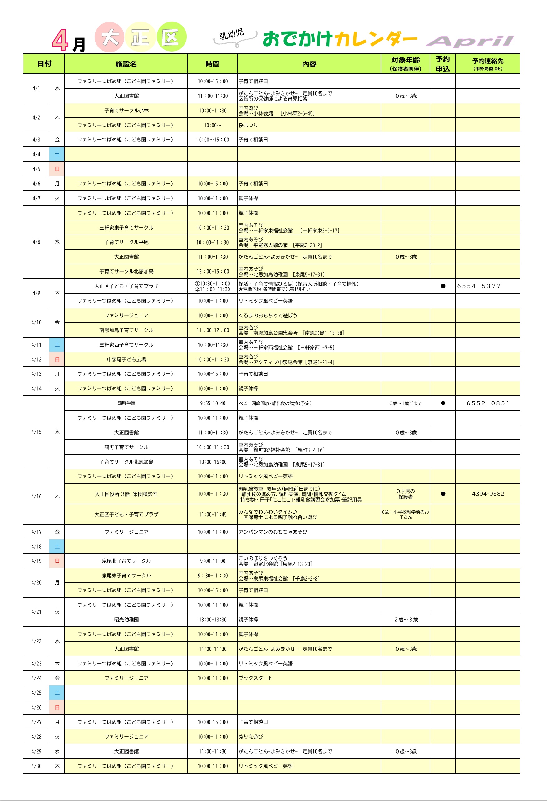 4月号(JPG形式, 834.54KB)乳幼児おでかけカレンダー4月号