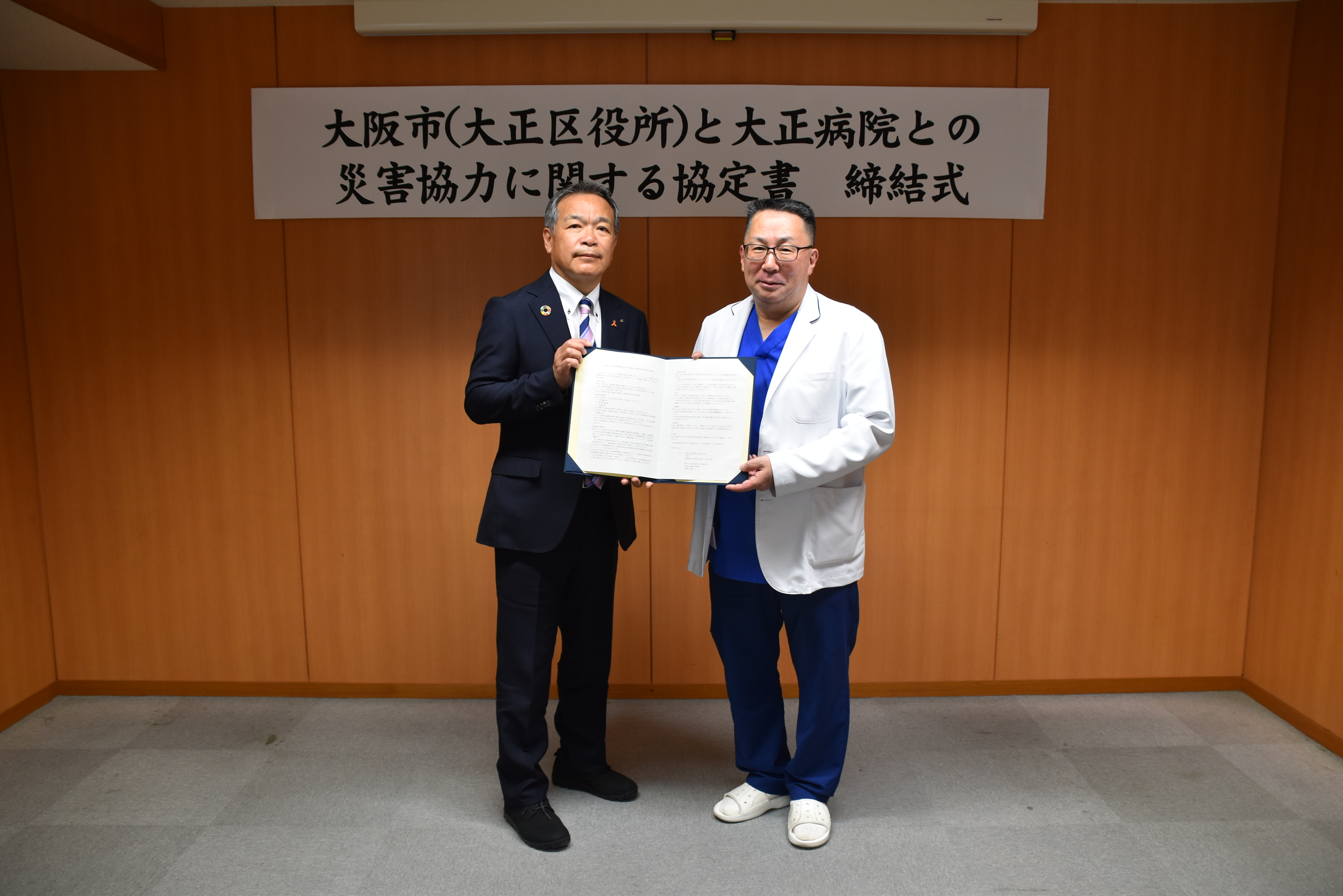 大正区役所と医療法人彰療会大正病院は、令和8年3月6日(金曜日)に「災害時における医療救護体制にかかる医薬品等の整備及び管理に関する協定」を締結しました。