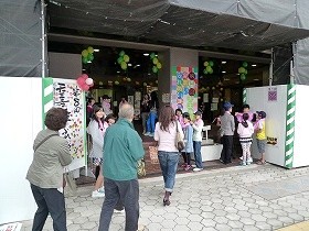 それぞれが担当する「ジュニアクラブブース」「プラバンブース」「飲み物コーナー」に分かれてから、玄関前でお客さまをお出迎えします。