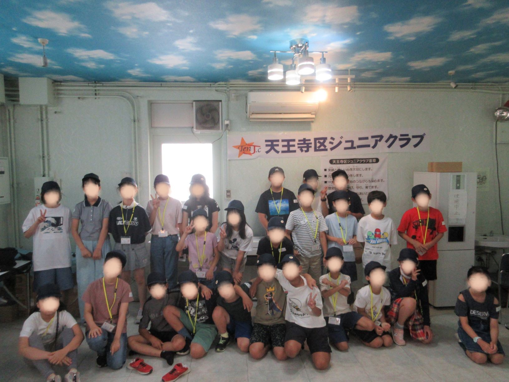 7月23日の水曜日、今年度2回目の天王寺区ジュニアクラブ活動として、天王寺東上町にある、ワークセンター中授(旧大阪市立中央授産場)にておしごと体験をさせていただきました。当日は26名の会員が障がいをお持ちの方たちと一緒に活動しました。