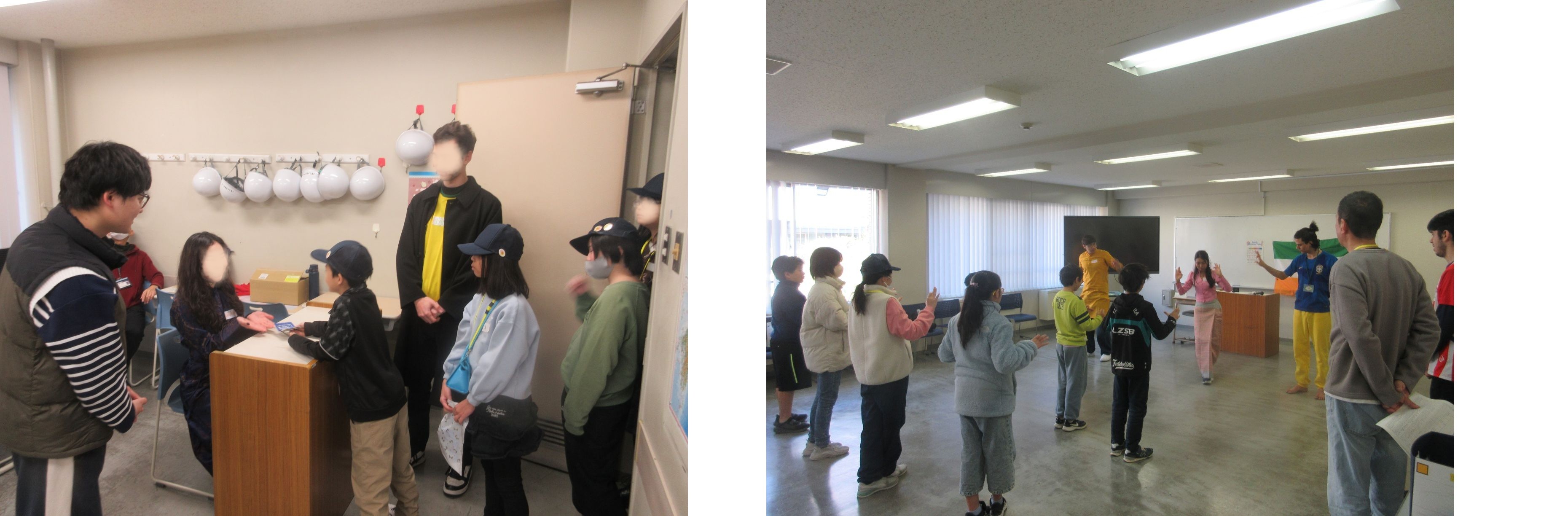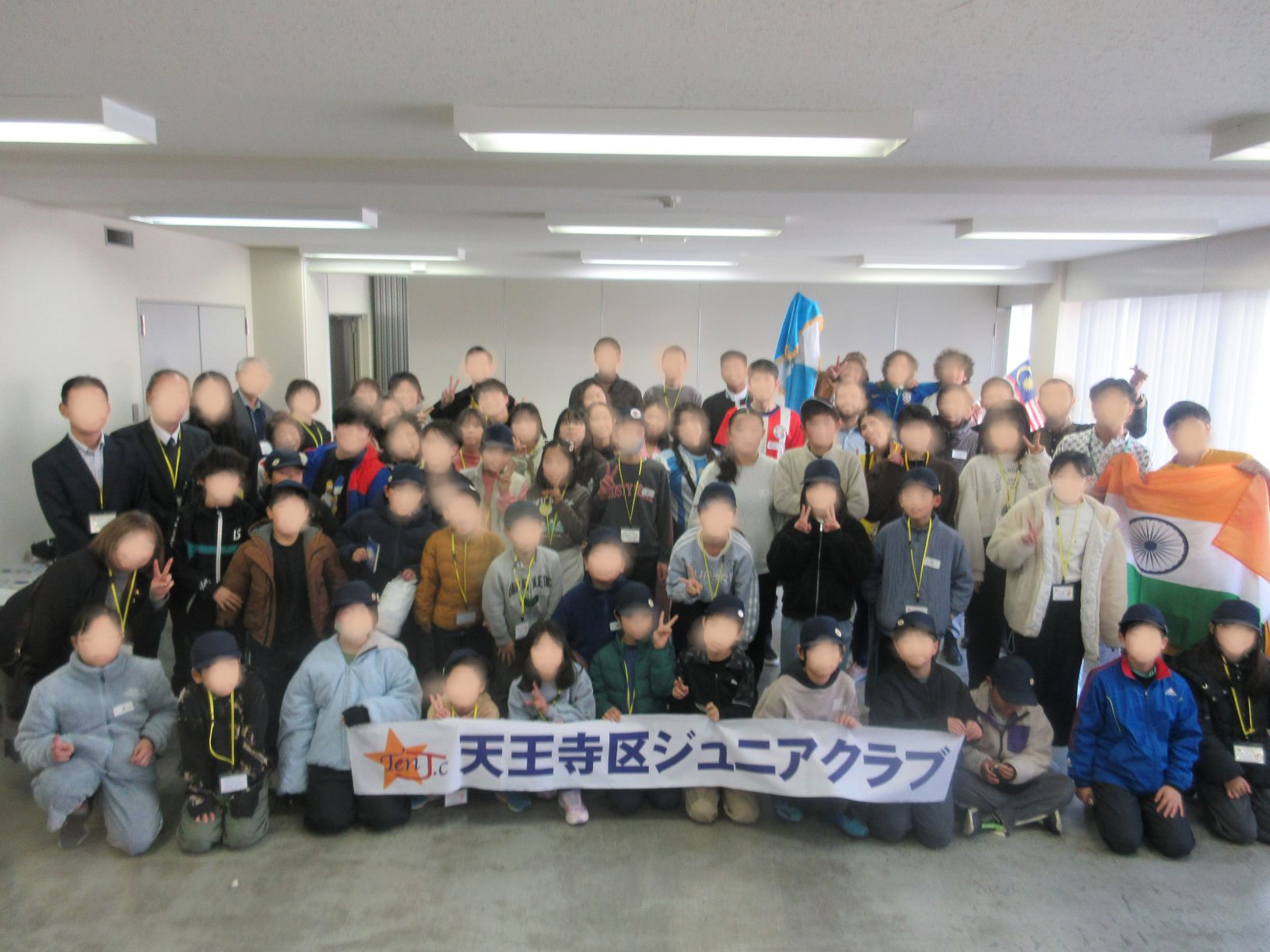 2月1日の日曜日、今年5回目の天王寺区ジュニアクラブ活動として、大阪日本語教育センターで日本語や日本の文化を学ぶ留学生のみなさんと国際交流をしました。当日は20名の留学生とともに、留学生のみなさんが入国審査体験・世界のお買い物体験・ダンス体験などいろいろ企画していたただいたブースを、35名の会員が外国語を使用して攻略していきました。