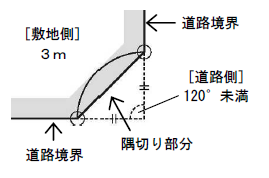 ア 開発道路 令第25条第2号に規定される道路で、開発区域内に新たに設置するもの(下図②又は③の拡幅部分を除く。)
