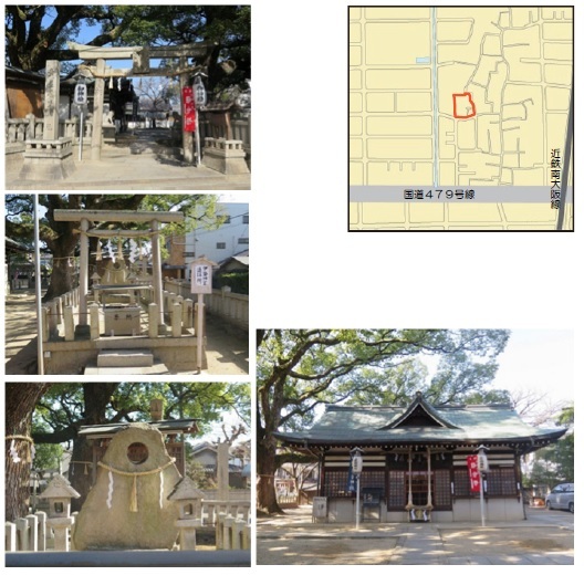 昔からの本殿、拝殿とともに樹齢500年の楠が鎮守の森として残されており、大和川付替え後も地域の氏神として鎮座する貴重な景観資源である。