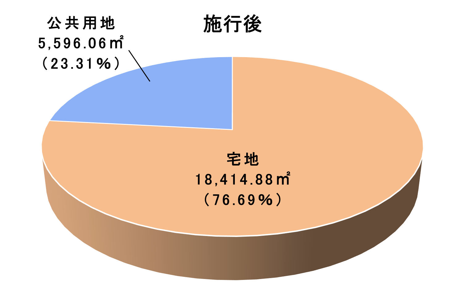 そこで、土地区画整理事業により、現況と地籍図との一致を図るとともに、認定道路の付替えおよび周辺の道路整備を行うことで、健全で良好な市街地を形成することを目的として実施しました。