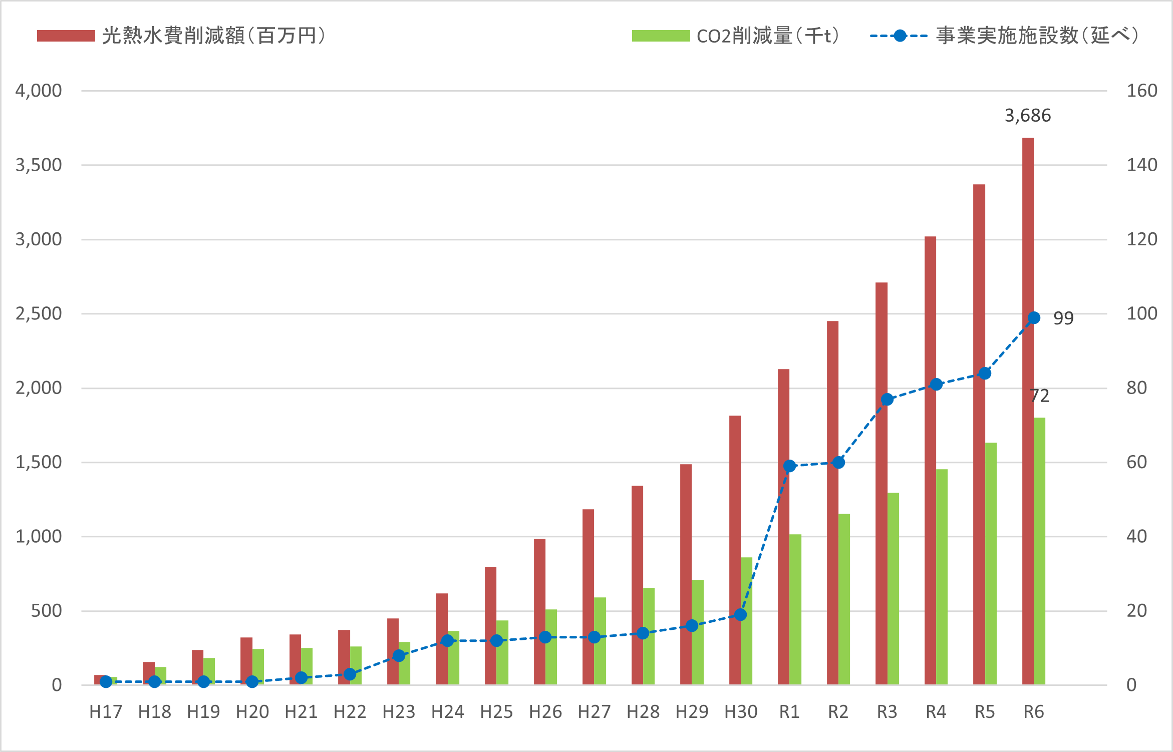 | 光熱水費削減額(累計) | 約36億9千万円 |