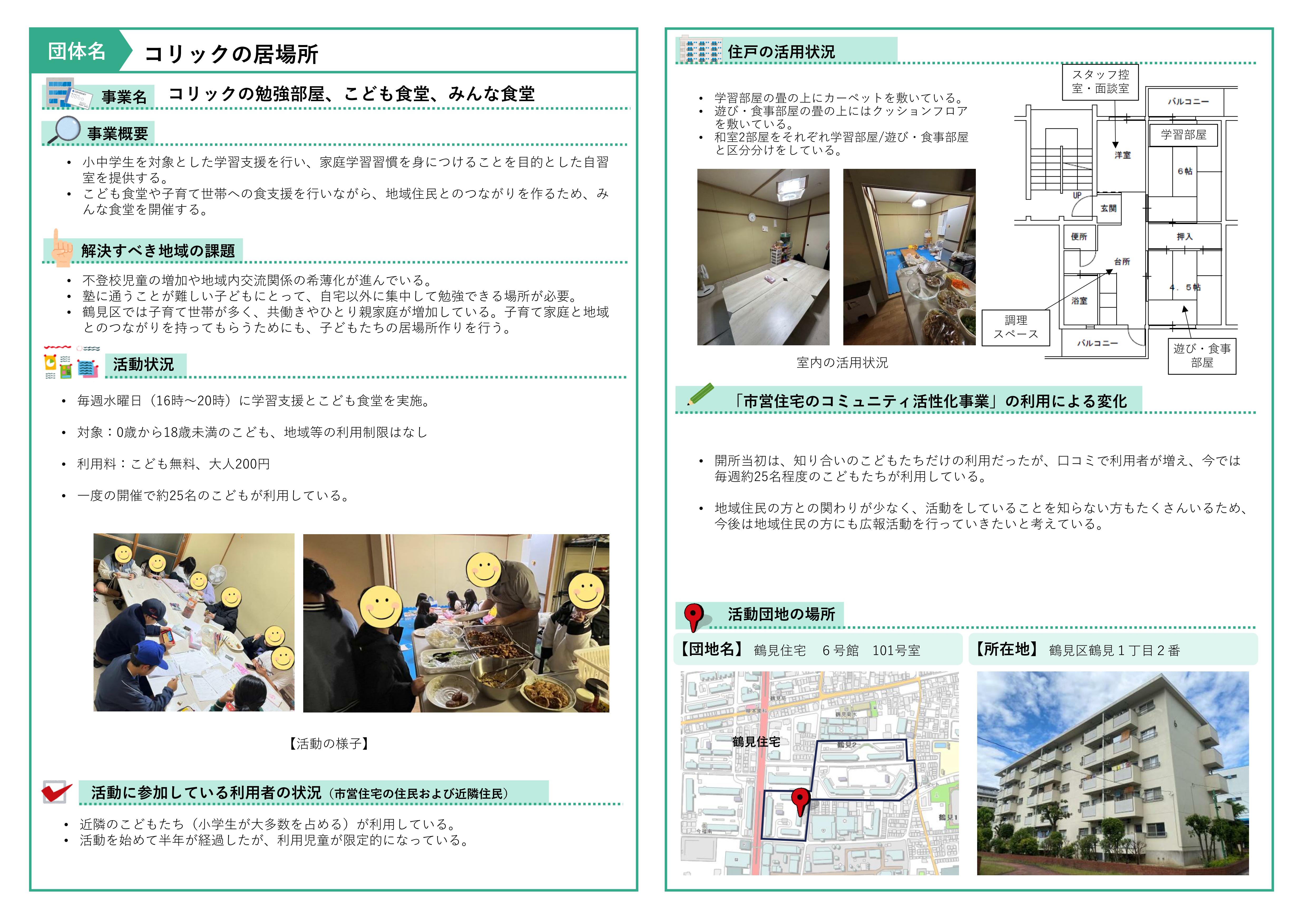 - 鶴見区 鶴見住宅6号館101号室 コリックの居場所 (事業区分 子育て、地域)