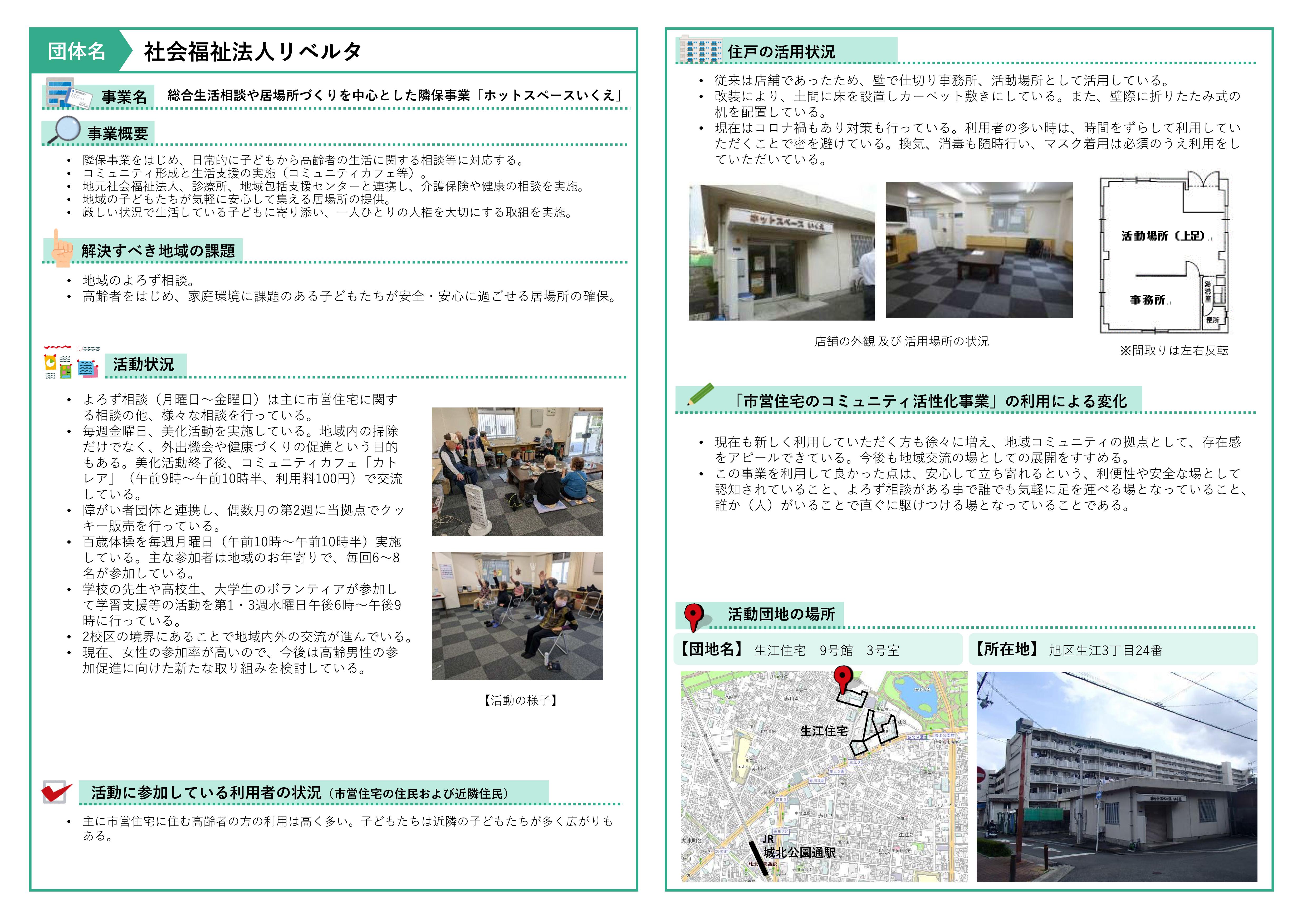 (事業名) 総合生活相談や居場所づくりを中心とした隣保事業「ホットスペースいくえ」