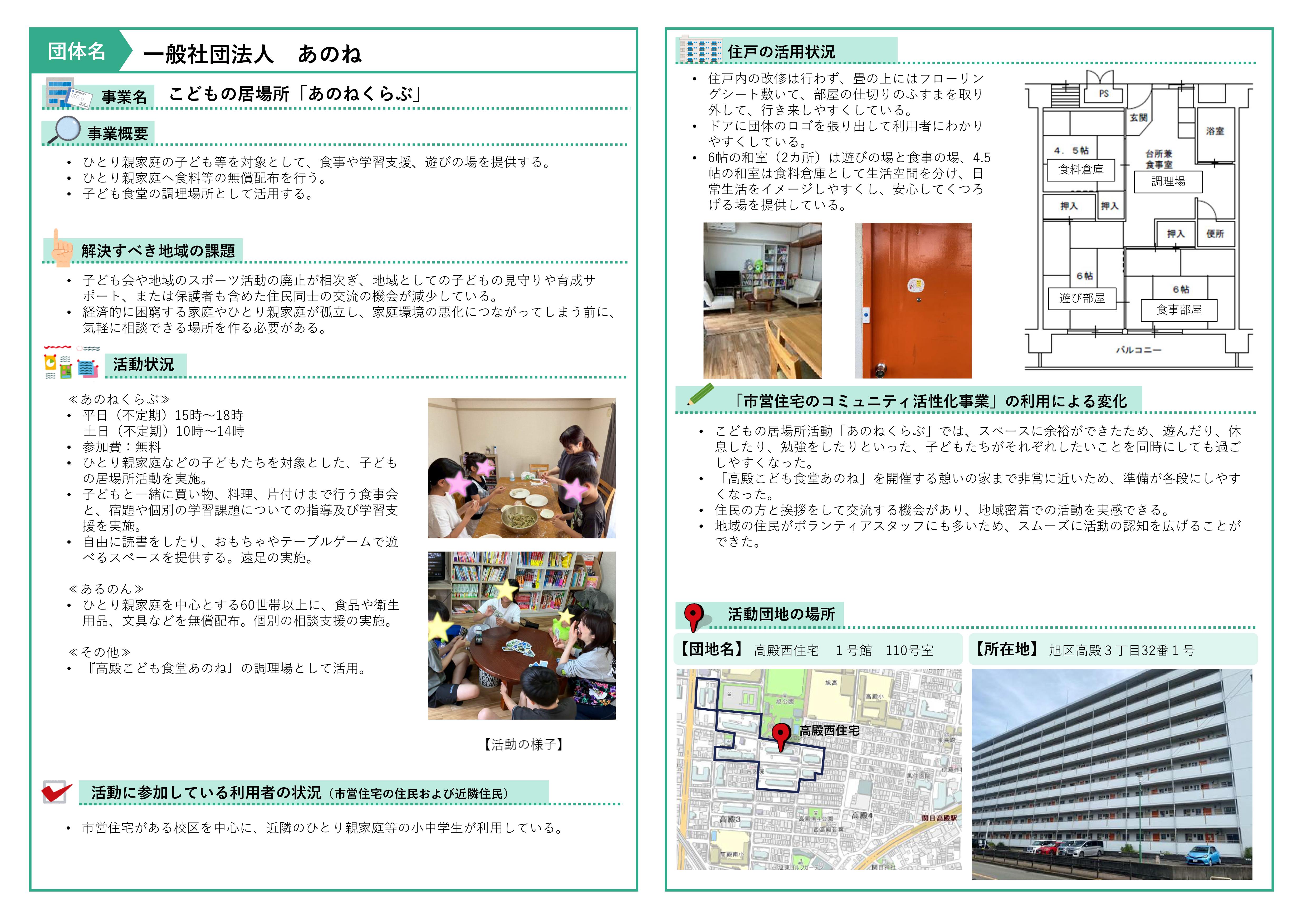 - 旭区 高殿西住宅1号館110号室 一般社団法人あのね (事業区分 子育て)