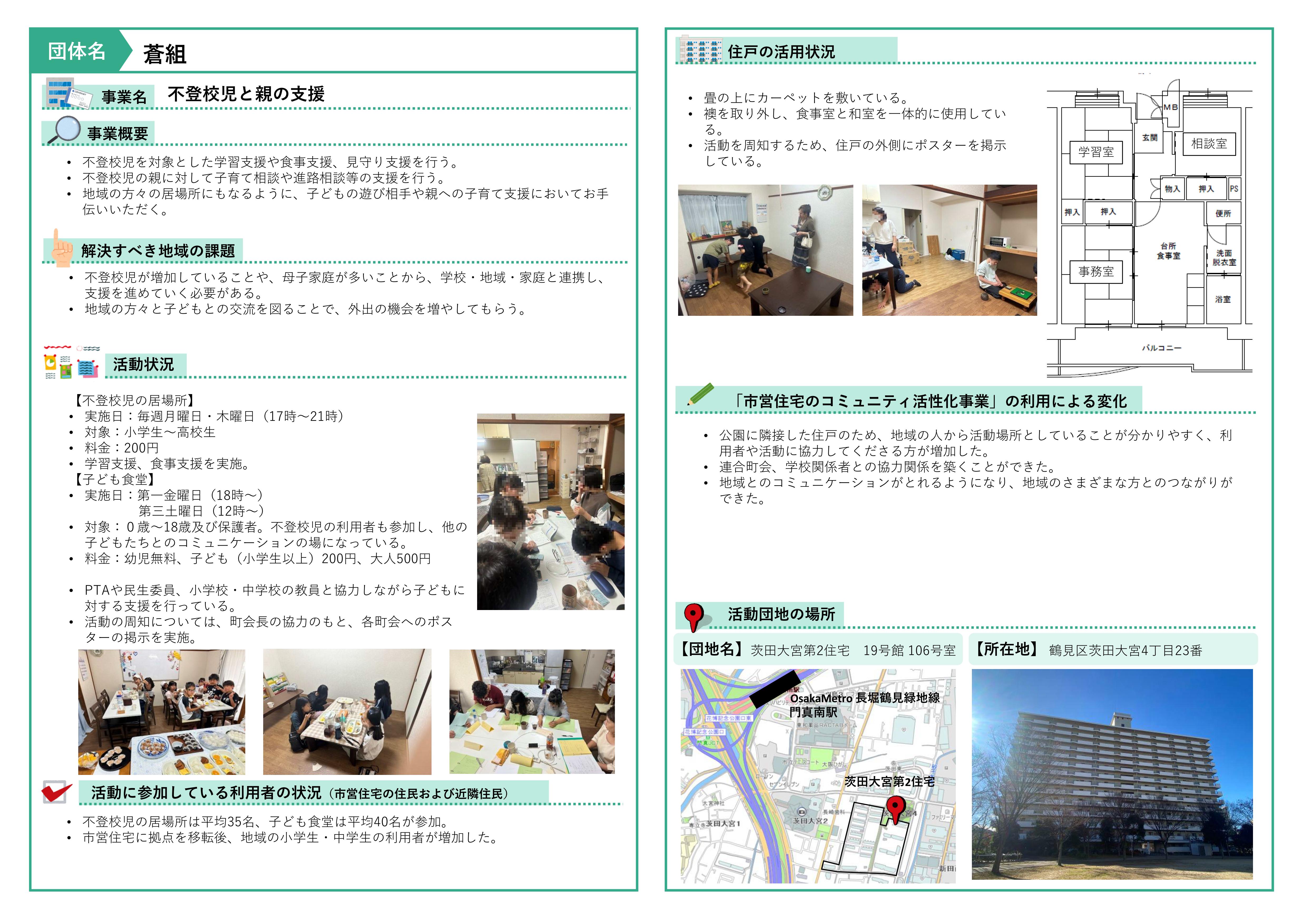 - 鶴見区 茨田大宮第2住宅19号館106号室 蒼組 (事業区分 子育て)