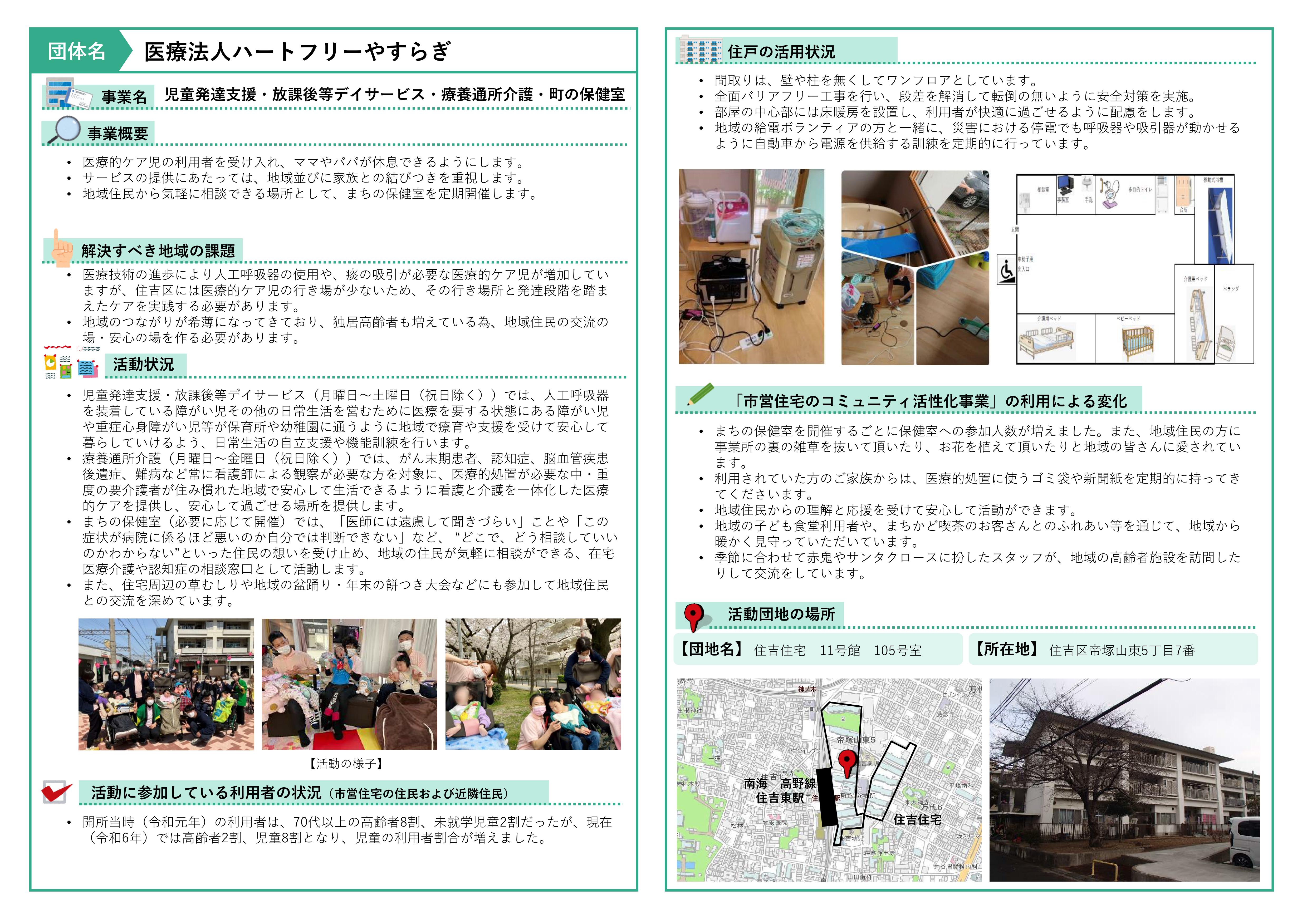 - 住吉区 住吉住宅11号館105号室 医療法人ハートフリーやすらぎ (事業区分 高齢者、子育て、地域)