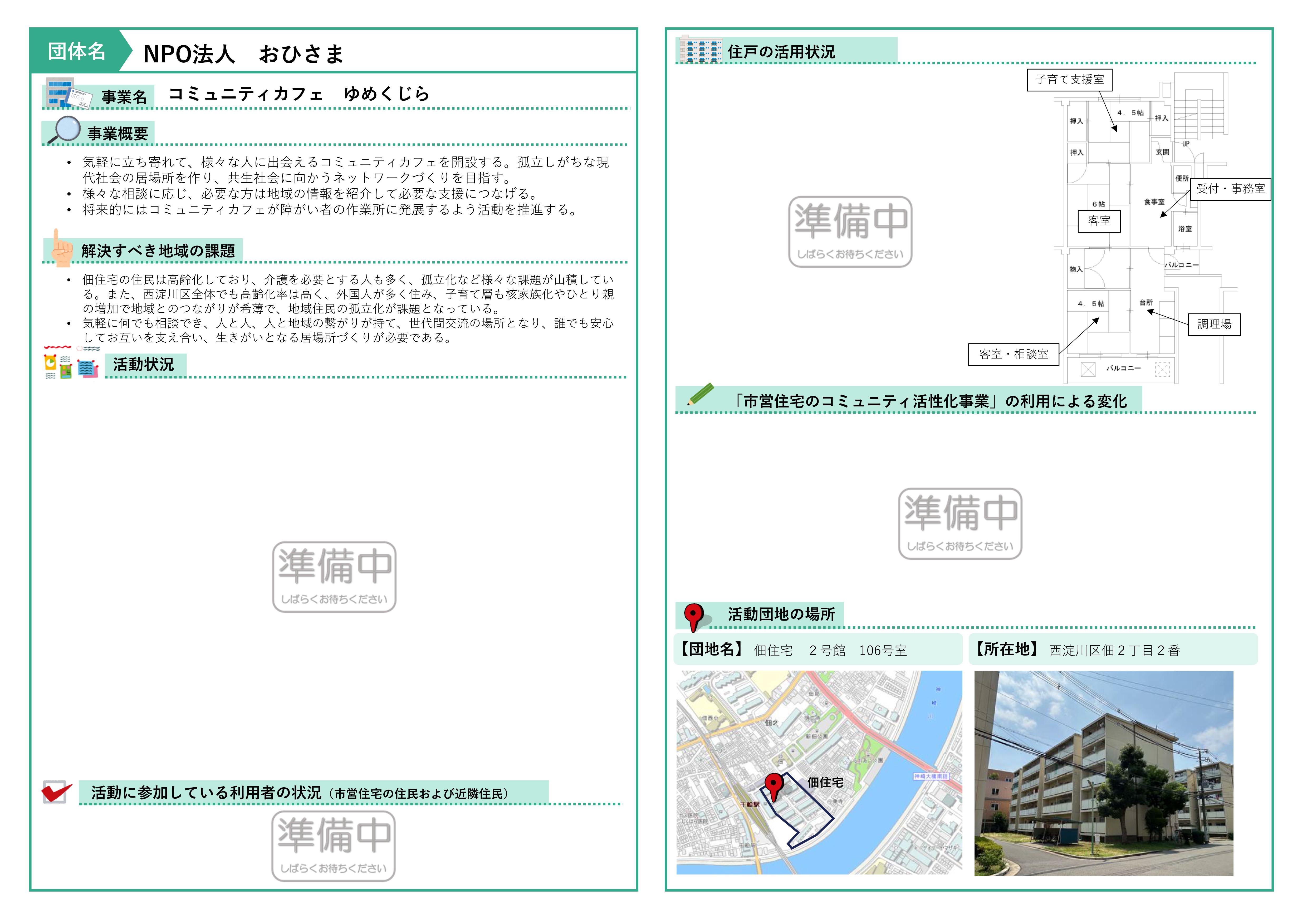 - 西淀川区 佃住宅2号館106号室 NPO法人 おひさま (事業区分 高齢者、子育て、地域)