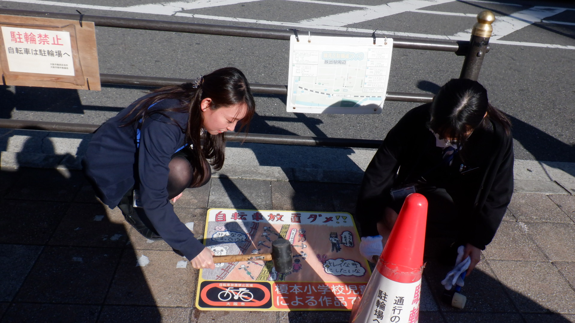 JR放出駅周辺放置自転車防止啓発絵画路面シート
