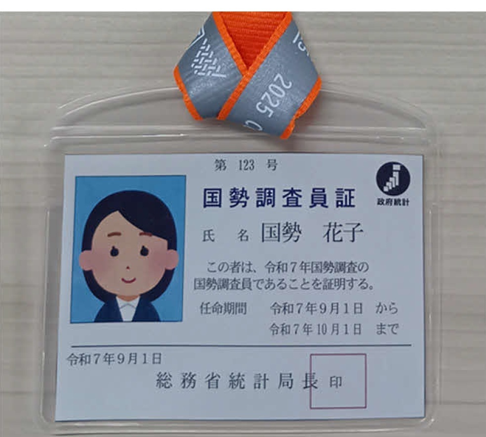 国勢調査員は、身分を証明する「国勢調査員証」などを携帯しています。