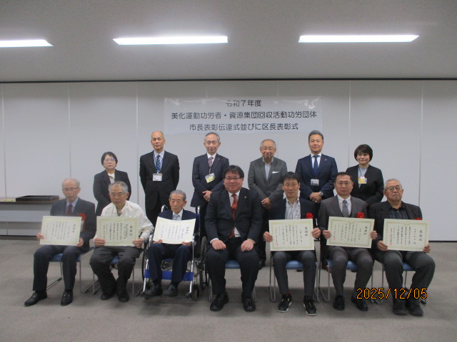 令和7年度 保全美化運動功労者・資源集団回収活動功労団体市長表彰伝達式・区長表彰式を開催しました