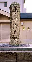 宮原1丁目のビルの谷間に「春日神社之址(あと)」と刻んだ石碑と三つの小さな社が安置されています。これは新大阪駅周辺土地区画整理事業に伴い移転されたものです。春日神社はもともと、もう少し南にあり、千坪ぐらいの境内をもっていたそうです。大昔、そこに大きな榊の老木がありましたが、この木を神木として奈良の春日大社から分霊をいただき、宮原の鎮守にしたのが春日神社の起こりとされています。ところが明治政府が神社等の合併に関する勅令を出し、神社維持の厳しい条件をつけたのが原因で、春日神社は明治41年に廃社となり、現在のような石碑が残るだけとなりました。