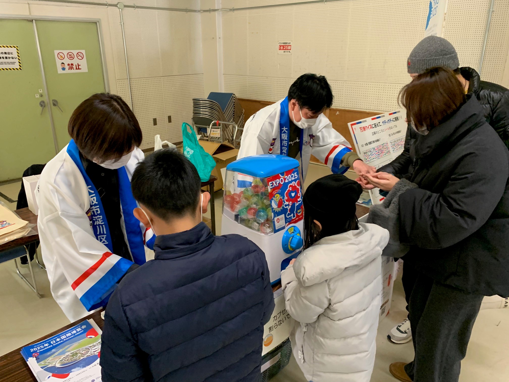 淀川区民センターで開催された、「よどがわ防災プロジェクト~体験型イベント~」によどがわ・ゆめ万博ブースも出店。オリジナル万博グッズが当たるガチャガチャは大盛り上がり!災害時に役立つ情報や知識と合わせて、大阪・関西万博についてたくさんの方に楽しみながら知ってもらえました。
