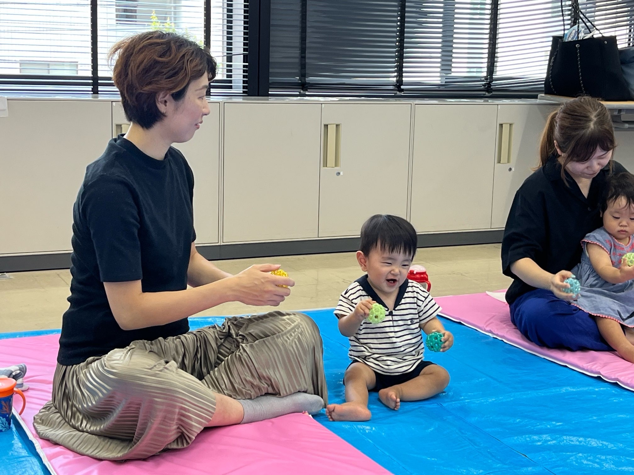 子どもたちの笑顔はもちろんですが、お子さんと関わっているお母さん方の笑顔もキラキラと素敵で、両方に癒された1時間でした。