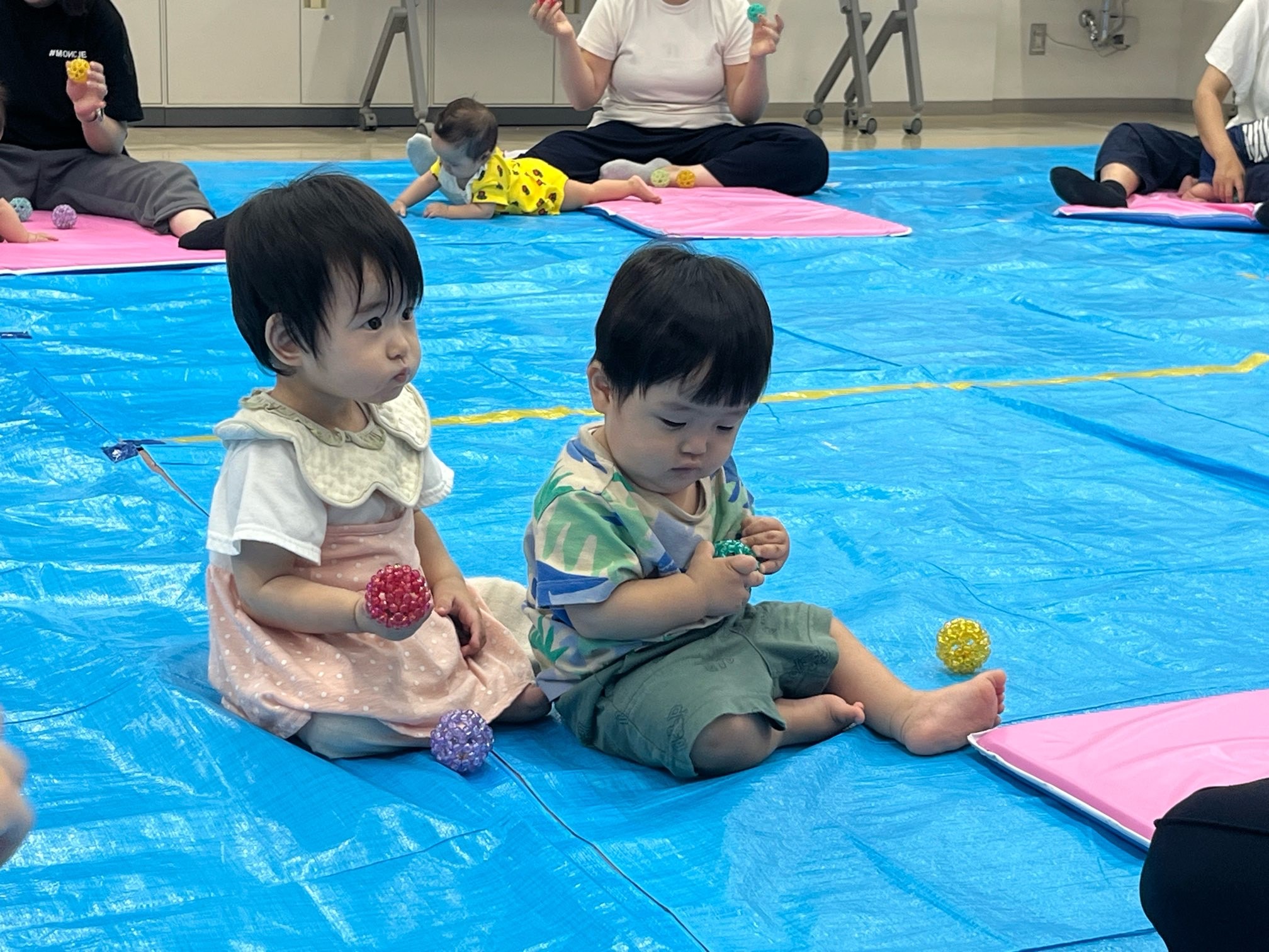 トコトコ組は元気いっぱい、ハイハイ組はほっこりと、同じ親子ヨガでも違った雰囲気でした。