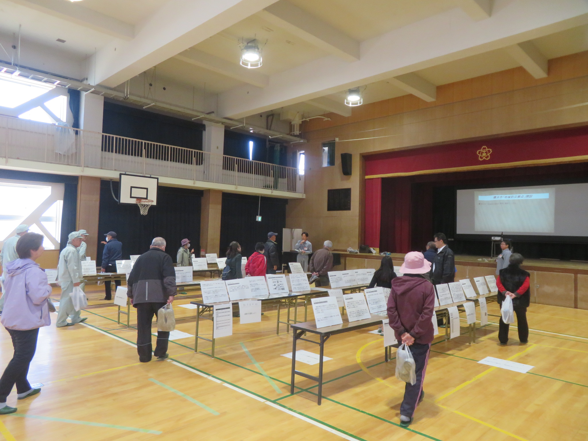 災害発生時に地域自主防災組織の誰もが避難所開設運営を担えるよう、「災害時避難所開設・運営マニュアル」に沿った開設手順等を説明しました。