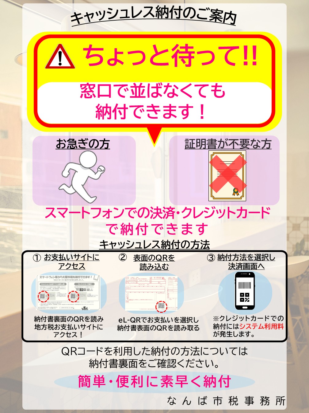 - 年度当初の証明発行窓口は大変混雑いたしますので、市税の納付には簡単・便利なキャッシュレス納付をご利用ください!