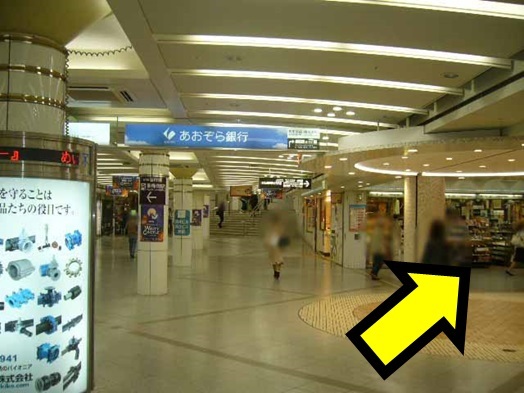 コンコースを真っ直ぐ進み、突き当りにあるエスカレーターで地下へ下ります