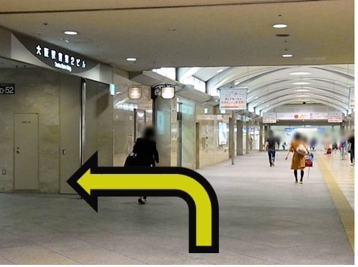 駅手前左に「大阪駅前第2ビル」入口のサイン(写真左上段)が見えます