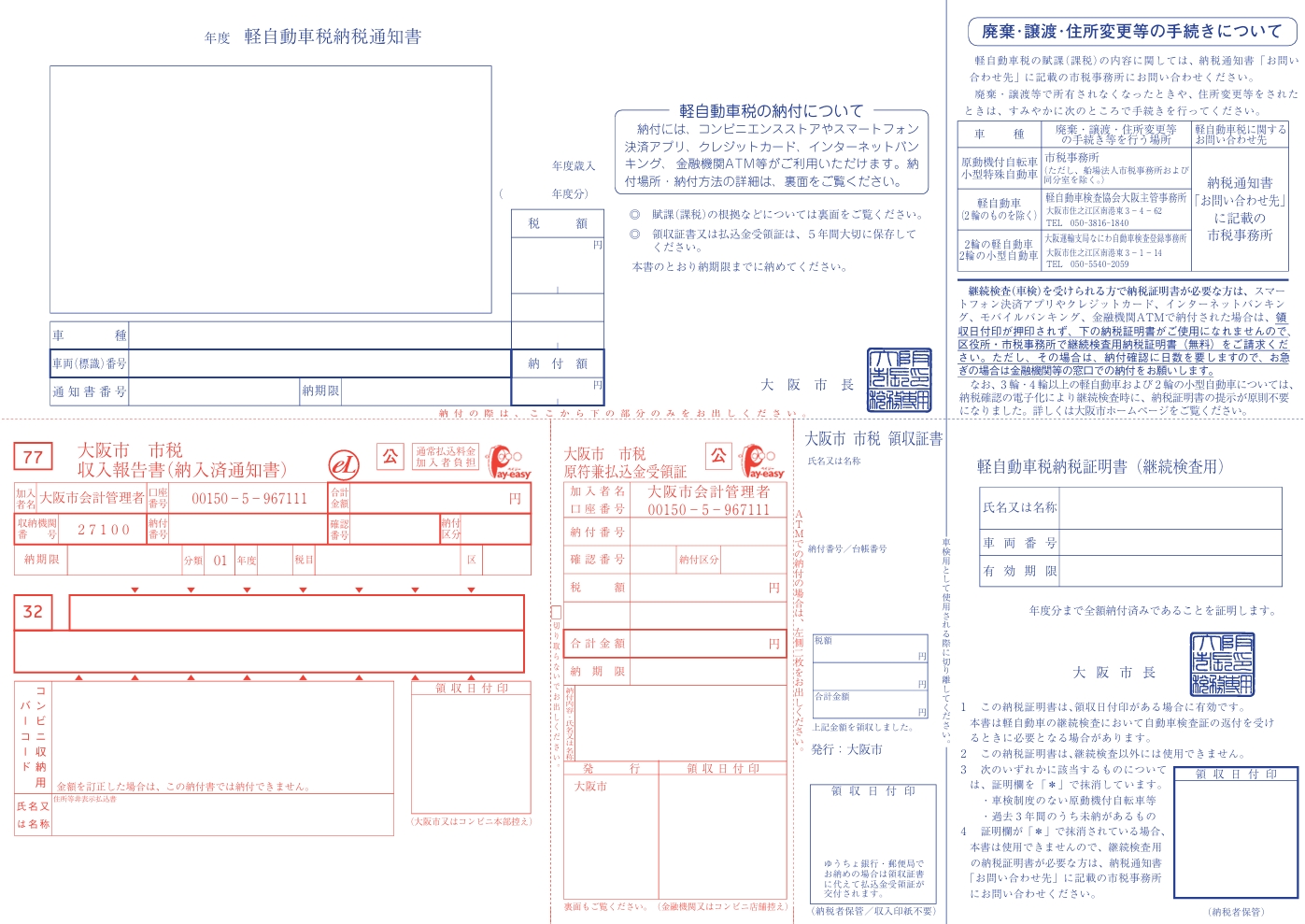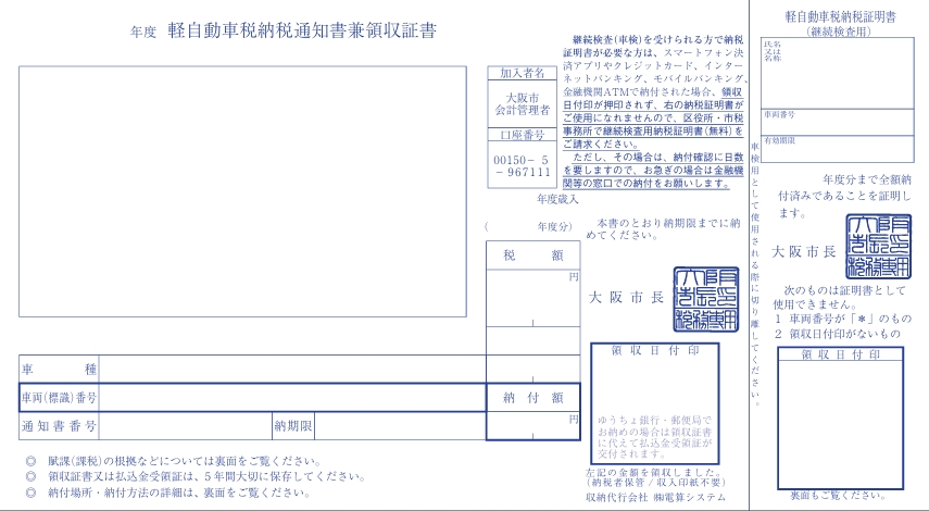 軽自動車税納税通知書兼領収証書